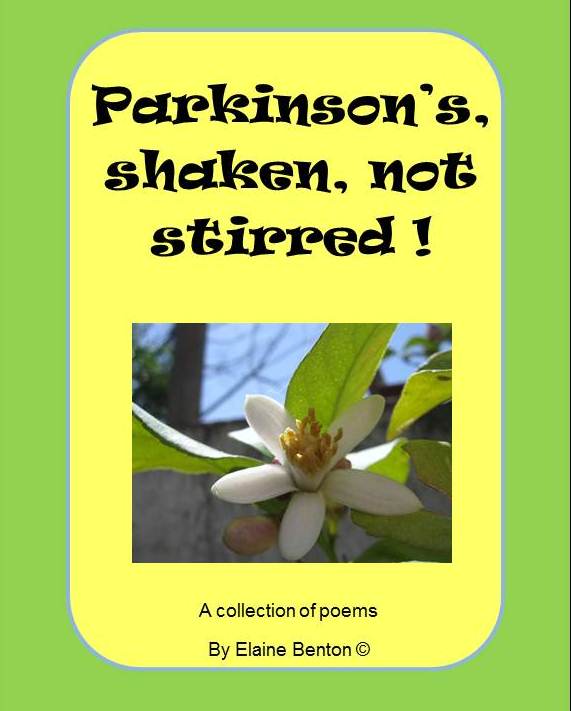 I would like to introduce you to a writer with considerable knowledge of Parkinson’s. Elaine Benton has written a book regarding her feelings and poems on Parkinson’s. She suffers from the disease and is one brave and strong woman to bring a humorous light to her illness. The following is on her authors page: